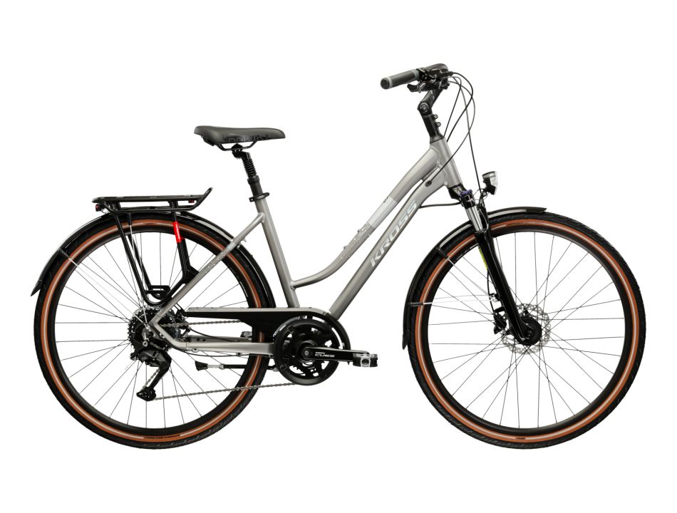 KROSS Trans 3.0 ULT.RA to rower turystyczny łączący cechy przydatne podczas rekreacyjnych wypraw, jak i codziennego zastosowania. Lekka, aluminiowa rama oraz amortyzowany widelec SR Suntour zapewniają komfort jazdy zarówno po asfalcie, jak i w trudniejszym terenie. Napęd Shimano w systemie 3x8 umożliwia płynne dostosowanie przełożeń do każdej trasy, a mechaniczne hamulce tarczowe gwarantują bezpieczeństwo i kontrolę. KROSS Trans 3.0 ULT.RA został zaprojektowany, aby zapewnić jak największy poziom komfortu zarówno podczas wypraw za miasto, jak i podczas dojazdów do pracy.