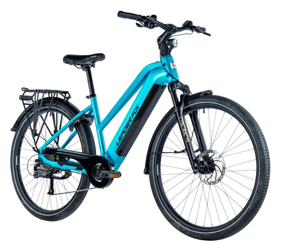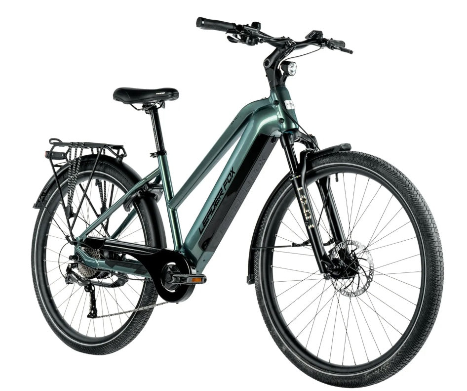 Nowość. Męski rower elektryczny cross-country Leader Fox BEND 28" z aluminiową ramą, amortyzowanym przednim widelcem, hamulcami tarczowymi, błotnikami i tylnym bagażnikiem. Uniwersalny do jazdy po drogach i w terenie.
