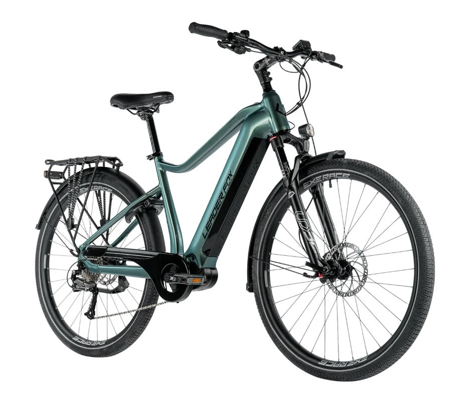 Nowość. Damski rower trekkingowy e-bike Leader Fox DIXON 29" z aluminiową ramą, amortyzowanym przednim widelcem, hamulcami tarczowymi, błotnikami i tylnym bagażnikiem. Wsiądź na rower i jedź, gdzie chcesz.